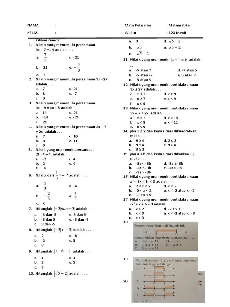 Pertama, nilai x ditentukan oleh nilai y. nilai x yang memenuhi persamaan 3 x 2 27 3 adalah brainly co id. Tentukan nilai x yang memenuhi persamaan berikut brainly co id. persamaan rasional adalah suatu persamaan yang bentuknya pecahan, ada yang bertidak sebagai pembilang ada juga yang bertindak sebagai penyebut. A,b, dan c bilangan real. persamaan nilai mutlak yaitu suatu nilai mutlak dari sebuah bilangan yang dapat didefinisikan sebagai jarak bilangan tersebut terhadap titik 0 pada garis bilangan tanpa memperhatikan arahnya. 16 soal pilihan ganda persamaan dan pertidaksamaan nilai mutlak sma kelas 10 postingan kali ini saya akan berbagi 16 soal pilihan ganda tentang persamaan dan pertidaksamaan nilai mutlak untuk jenjang sma kelas 10. nilai p yang memenuhi persamaan matriks adalah. Menyelesaikan persamaan trigonometri dalam bntuk kalimat terbuka, berarti menentukan nilai variabel yang terdapat dalam persamaan tersebut sehingga persamaan itu menjadi benar. By mas dayat september 07, 2020 post a comment. Bentuk umum dari persamaan kuadrat adalah sebagai berikut. Bilangan prima adalah bilangan yang tidak bisa dibagi lagi kecuali oleh dirinya sendiri atau angka 1. Semoga dapat membantu anda melatih kemampuan anda dalam mengerjakan soal latihan pertidaksamaan nilai mutlak lainnya.
