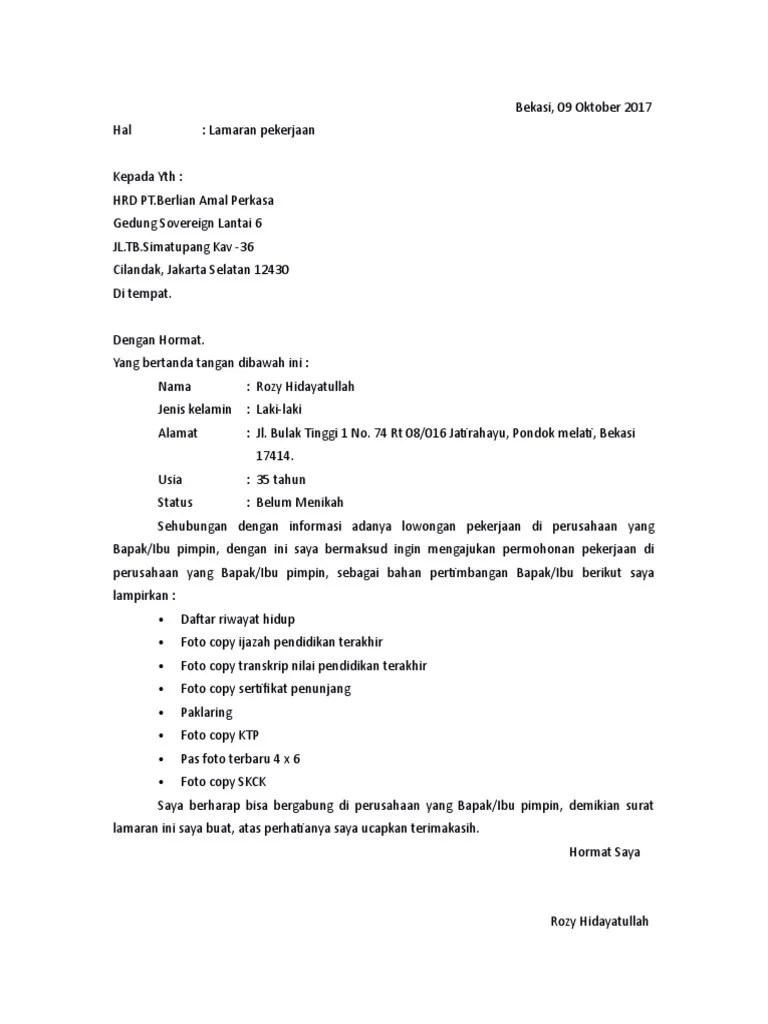Berikut ini data singkat tentang diri saya:. Saat menuliskan penutup surat, tulislah secara singkat dan . Pada bagian ini, tulislah harapan anda kepada perusahaan. Saya akan memberikan contoh surat lamaran kerja yang baik dan benar + disukai hrd. Berikut ini contoh surat lamaran kerja yang lengkap dan khusus saya buat anda yang.